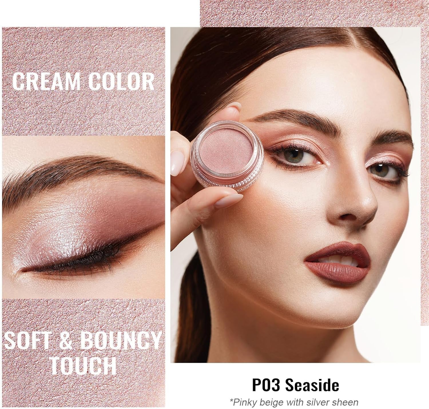 Shimmer Eyeshadow Pearl Finish| Pink Beige Eyeshadow & Highlighter Duo| Waterproof & Long-Lasting| Longwear Blendable Shimmer Eye Make-Up | Vegan | 06G (P03) Seaside
