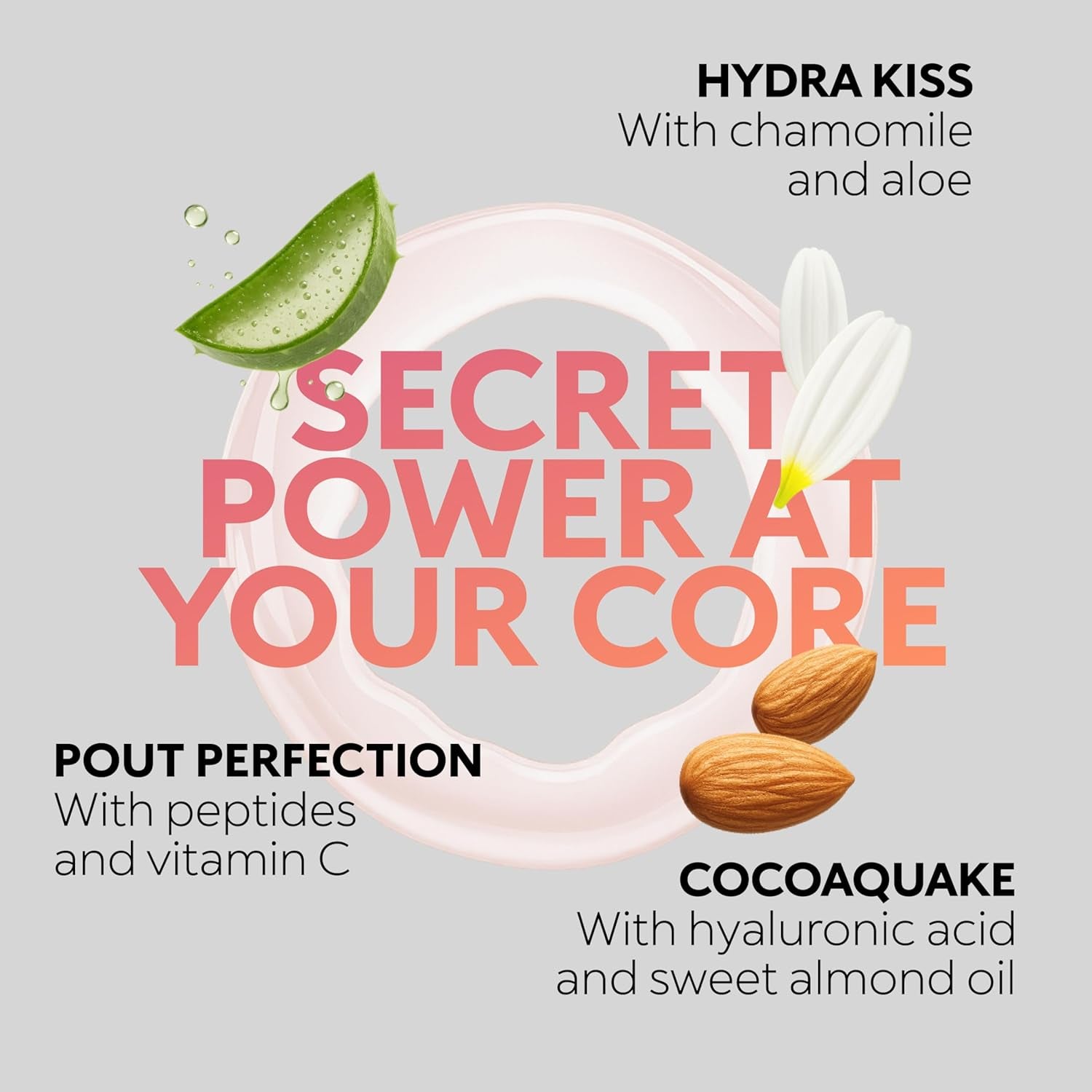DESCRIPTION: The first balm with a lip oil core, offering a new way to look after your lips. Its unique texture melts upon contact with the lips, leaving a feeling of total comfort. You’ll love it because: -Its revolutionary formula is designed with patented technology -The light veil of colour offers a 3D finish -It offers unprecedented sensoriality. Available in three variants to meet every need, for lips that are always pampered: -HYDRA KISS - SOOTHING With camomile and aloe The soothing touch for lips in need of softness -POUT PERFECTION - SMOOTHING With peptides and vitamin C For super-soft and perfected lips -COCOAQUAKE - NOURISHING With Hyaluronic Acid and sweet almond oil For silky, nourished and radiant lips TEST: Dermatologically tested *Clinical and instrumental test RESULTS: Transform your lip care routine into a ritual with this unique balm. Every application is an experience and every coat is a discovery. HOW TO USE: 1. Apply the product directly to the lips following their shape, starting from the inside and working outwards. 2. Repeat as desired throughout the day for soft and shiny lips at all times.WARNING Winning someone's heart is never easy, and the same is true for our balm: before you achieve the lip oil finish, you’ll have to apply the product several times. But we swear it will be worth it! PAO: 18 Made In: IT